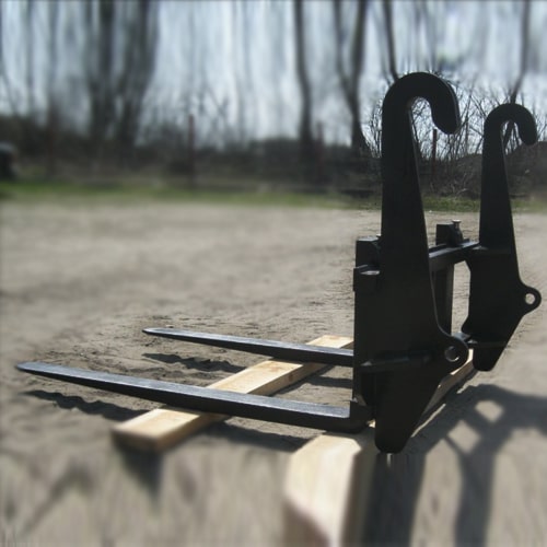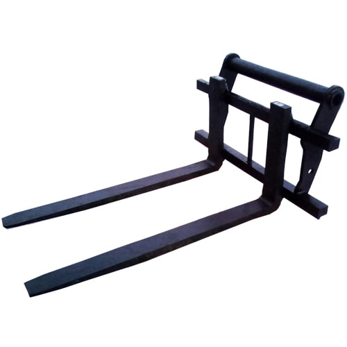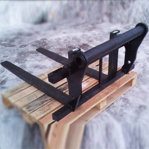 Паллетные вилы для телескопического погрузчика - это навесное оборудование для телескопического погрузчика, которое позволяет работать с разнообразными грузами на паллетах, такими как сено, солома, силос, доски, кирпичи и т.д.
