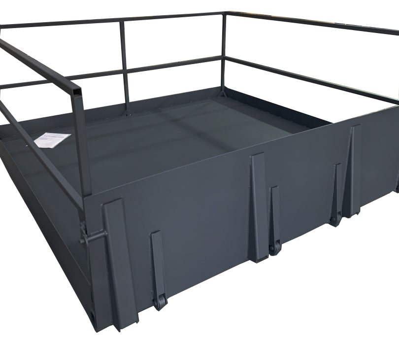 Платформа для загрузки и выгрузки на вилочный погрузчик - это специальное устройство, которое позволяет быстро и безопасно переносить грузы с одного транспортного средства на другое. Эта платформа состоит из металлической рамы, которая крепится к вилкам погрузчика, и имеет регулируемую высоту и угол наклона. Платформа также имеет бортики, которые предотвращают соскальзывание груза, и ролики, которые облегчают скольжение груза по платформе.