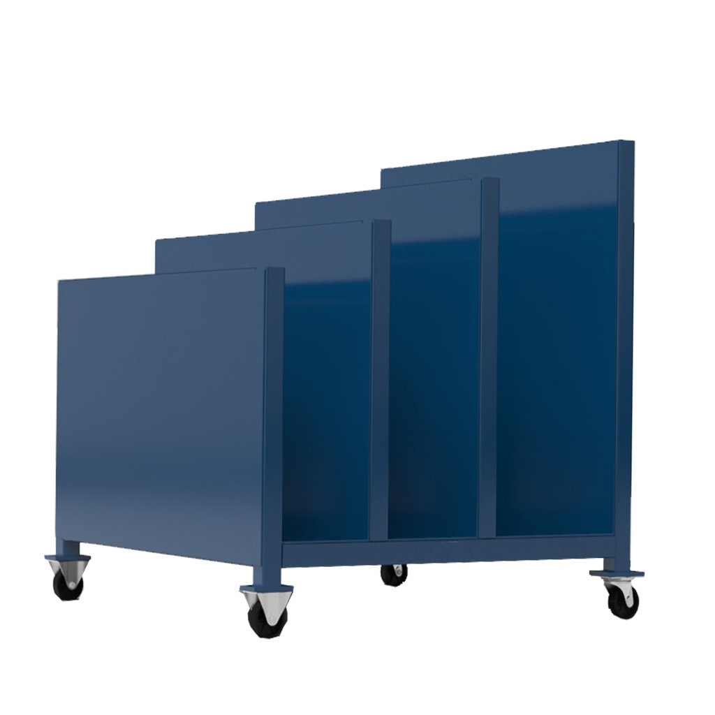 Тележка для панелей имеет прочную стальную конструкцию, которая выдерживает большие нагрузки и оснащена качественными поворотными колесами, которые обеспечивают легкость и плавность хода.