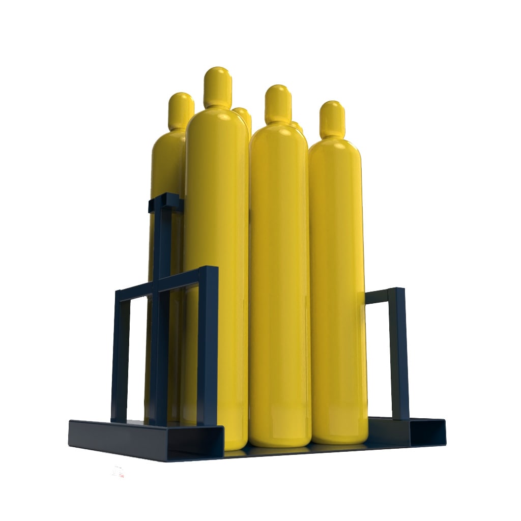 Клеть позволяет хранить баллоны с техническими газами в соответствии с нормами и правилами, а также транспортировать их с помощью крана или погрузчика.