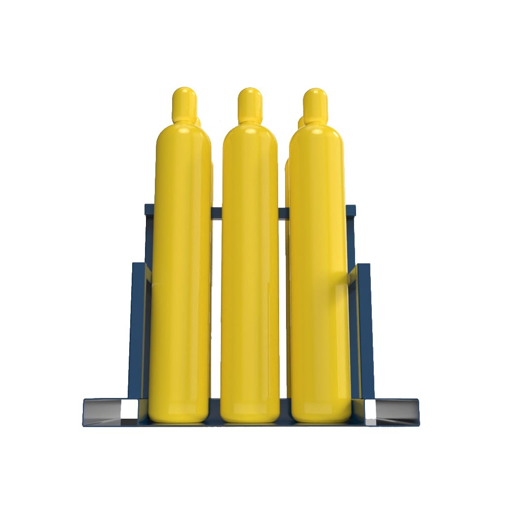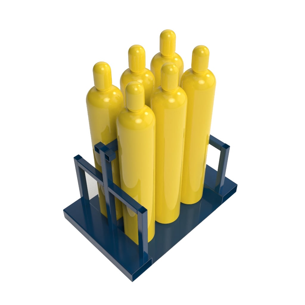 Клеть изготовлена из прочной стали и оснащена специальными захватами для крюка и карманми для погрузчика. Клеть вмещает в себя 6 баллонов различного типа и размера, в том числе кислородных, пропановых, ацетиленовых и других.
